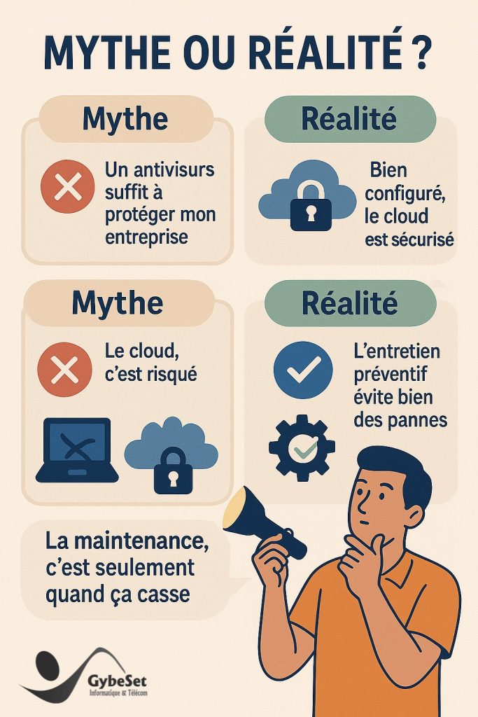 Chez Gybeset, nous transformons ces idées reçues en solutions concrètes pour sécuriser et simplifier vos usages numériques.